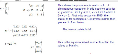 The values for a, b, c can then either be found using Gaussian elimination with pivotal condensation or matrix inversion. We choose the latter as it is more straightforward and amenable to a good computing program.